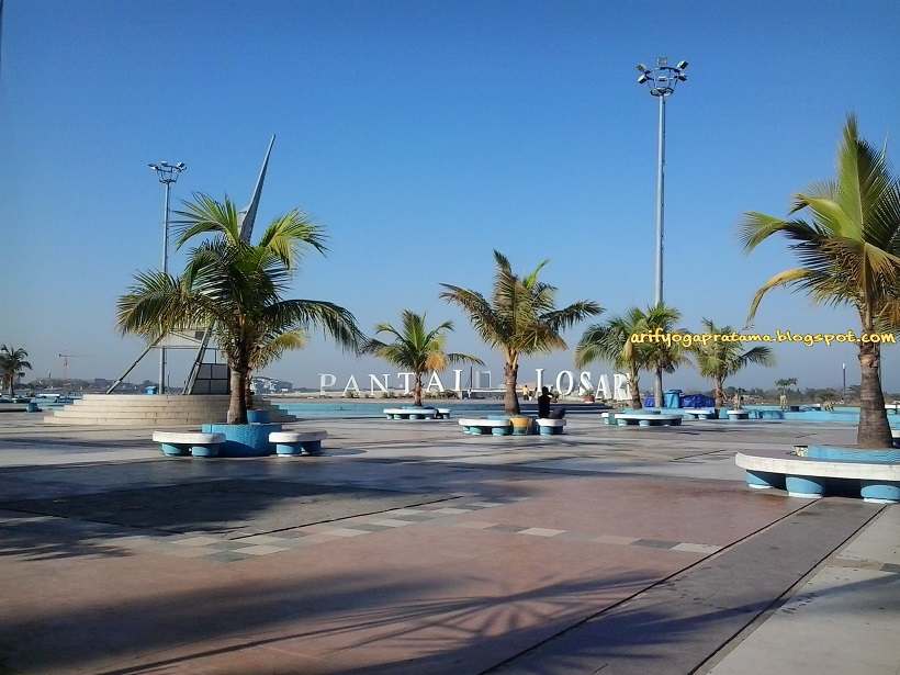 Seperti biasa hadiah hiburan buat seluruh peserta lomba biasanya ada field trip ke objek-objek wisata yang ada disekitar penyelenggara lomba. Dan tempat yang paling terkenal di Makasar apalagi kalo bukan Pantai Losari. Buat kamu yang terbiasa dengan istilah pantai adalah suatu tempat antara laut dan darat dimana banyak pasir dan bebatuan disana, maka jangan bayangkan Pantai Losari seperti itu. Pantai Losari lebih mirip suatu dermaga dimana kapal-kapal bisa langsung merapat tanpa ada batas pasir antara laut dan darat. Rada kecewa awalnya tapi yahhh syukur banget udah bisa sampe sini.