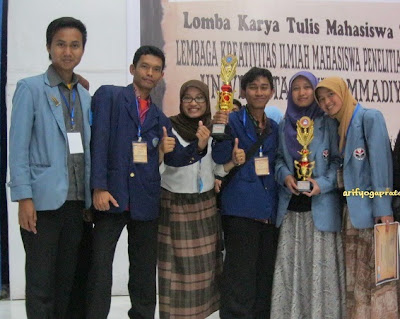 Dengan proposal satu nama tapi dengan rincian anggaran untuk dua nama akhirnya mas Nur dapet bantuan dana supaya aku bisa berangkat. Dan usahanya mas Nur gak sia-sia, tim kami dengan satu lagi yaitu Mas Yusron berhasil dapet Juara 3 dengan juara 1 dari kampus Universitas Brawijaya (UB). Yah alhamdulillah banget lah, mengingat persiapan kami yang H-1 batas pengumpulan paper kami masih lembur di depan Student Center tapi ternyata bisa dapet juara tiga, bener-bener alhamdulillah..