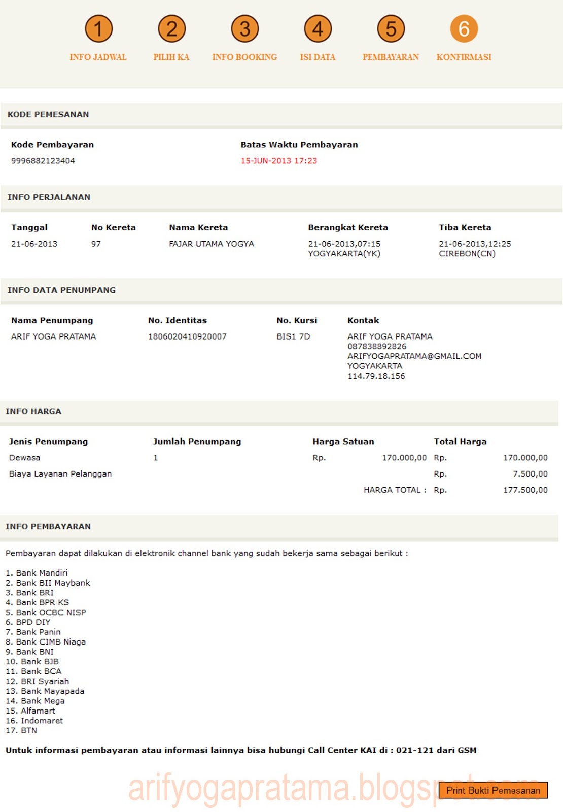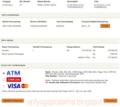 Step terakhir cek lagi data nya dan lakukan pembayaran sesuai metode yang dipilih. Misal bayar pake ATM (karna saya baru pernah nyoba pake ATM..ha.haa)