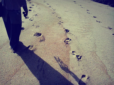 Cuma ada empat pasang jejak telapak kaki disini… 2 pasang perjalanan mulai.. dan dua lagi ketika balik.. beuuuhhh… kalo kata Dipsi, lagi.lagi..lagi….