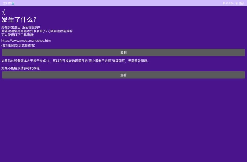 Oke, sedikit teori (dikit aja janji). Kenapa sih error ungu itu muncul? Jadi, di Android 12 ke atas, ada fitur namanya Phantom Process Killer. Fitur ini galak banget, dia ngebatesin satu aplikasi cuma boleh punya maksimal 32 “anak buah” (child process). Padahal, Linux di Tiny Computer butuh ratusan proses buat jalan. Karena kebanyakan, sama Android langsung “dibunuh” paksa deh aplikasinya. Makanya muncul Error Code 9.